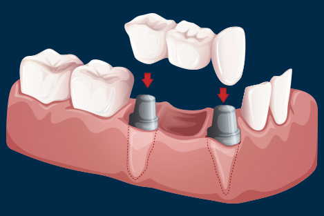 A bridge is a fixed dental restoration (a fixed dental prosthesis) used to replace a missing tooth (or several teeth) by joining an artificial tooth permanently to adjacent teeth or dental implants.
